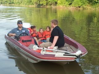 Had a few Extra mins tonight and decided to get the old girl wet. Loaded the wife and kids and went to the nav. Channel. We live just up stream from the Tulsa Port of Catoosa, the largest inland port in the USA if I'm not mistaking. Anyway after backing the boat down the ramp I fired her up and let her run a bit then when I was satisfied with the way she ran I disconnected from the trailer and had the wife go park.
